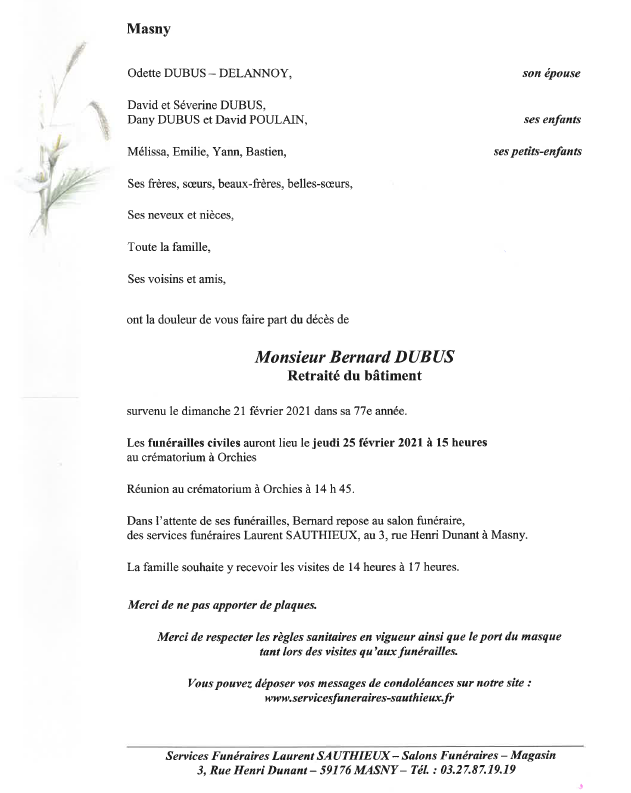 Prenant part à votre douleur, nous vous prions de recevoir nos très sincères condoléances. Nous partageons votre peine en ce moment de deuil.