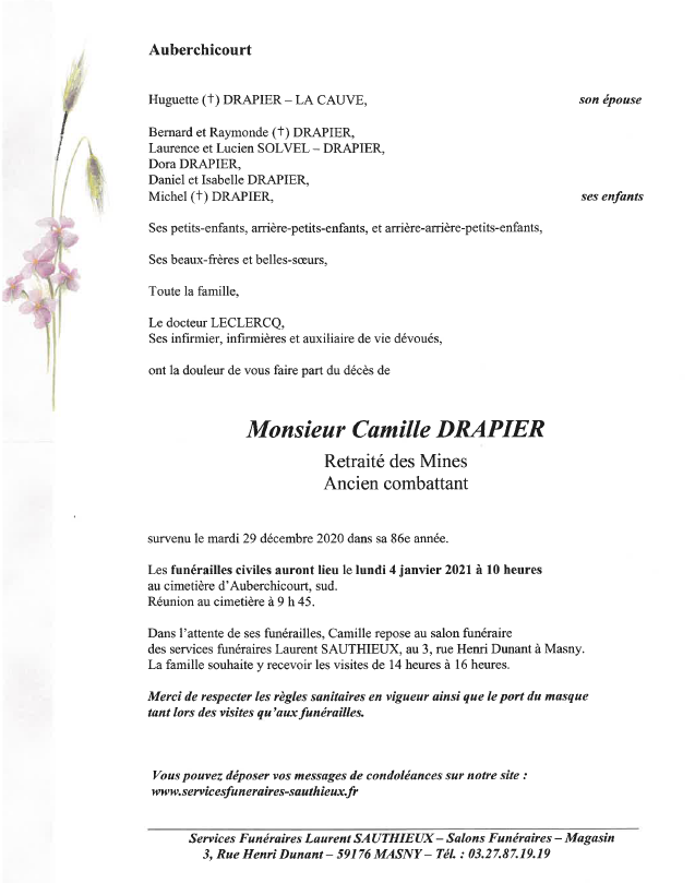 Tu étais une personne avec un grand cœur , qui savais redonner et donner le sourire. Tu étais pour moi ma petite merveille étincelante . L’arrière grand-père exemplaire que tout le monde reverais d avoir malgré les quelques petites cachoteries mais cela n ‘a pas d’importances pour moi . Tu es malheureusement partis beaucoup trop vite la haut tu va rejoindre mémé Huguette et tonton Michel . Tu sera mon étoile pour le reste de ma vie celle qui brillera plus fort et tu sera toujours auprès de moi dans mon cœur et dans mon esprit . Tu me manque déjà énormément. Je te fait plein de gros bisous . Je t aime très fort