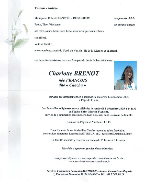 Charlotte était une « maman courage », une femme forte, et sa joie de vivre ainsi que son sourire resteront gravés dans nos mémoires.