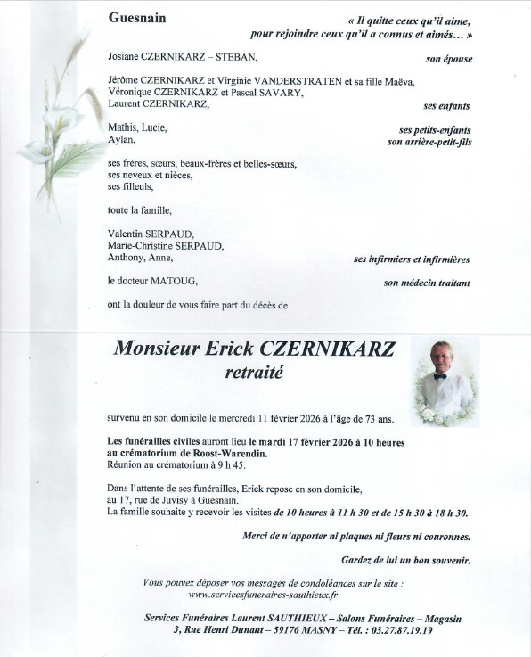 3. Nous présentons nos sincères condoléances à toute la famille et proches de Mr CZERNIKARZ