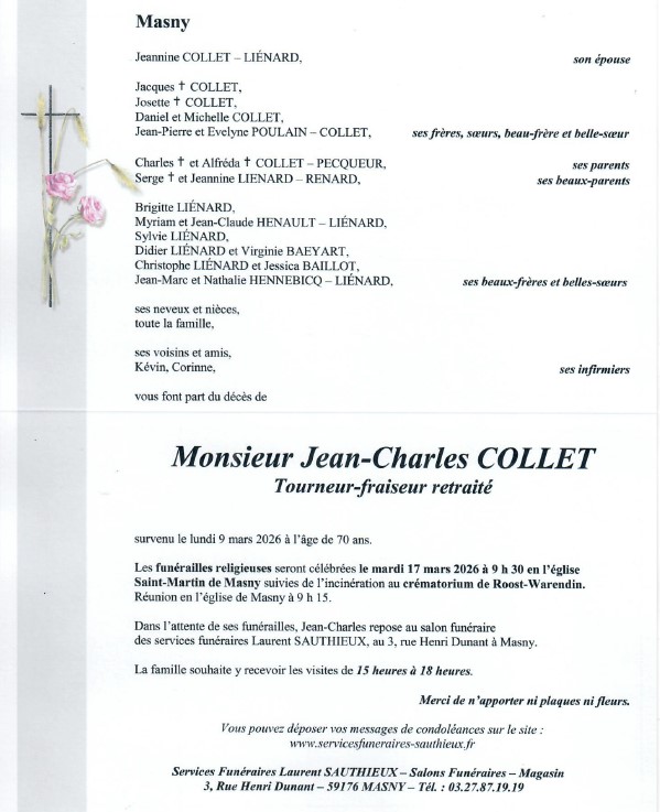 Je vous présente mes sincères condoleances Je suis Josiane la soeur de Claudine la femme de Jean marie décédé il y a 7 ans