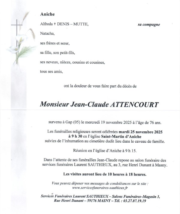 Sinceres condoleances a la famille tu resteras gravé dans mon coeur jean claude toi mon tchit moi qui suis de la haut comme toi j ai passé tant de bons moment avec toi amitiés claude.