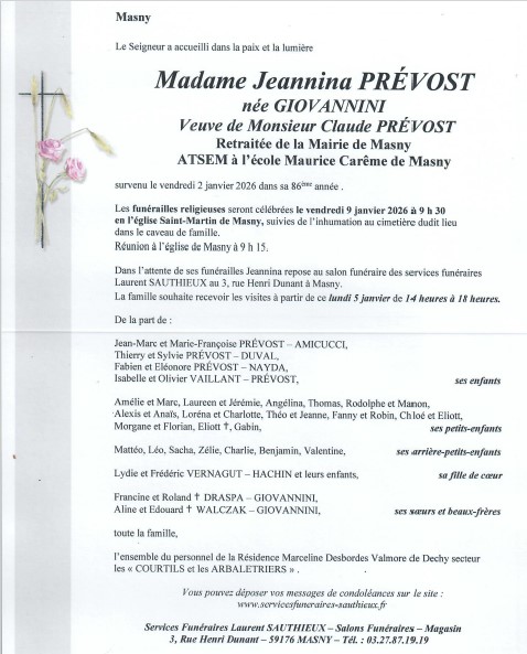 sincères condoléances bon courage à la famille jeannina sera toujours près de vous et de nous