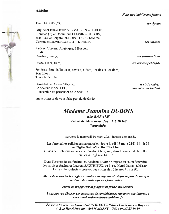 Recevez nos sincères condoléances de Jean-Louis & Claudie