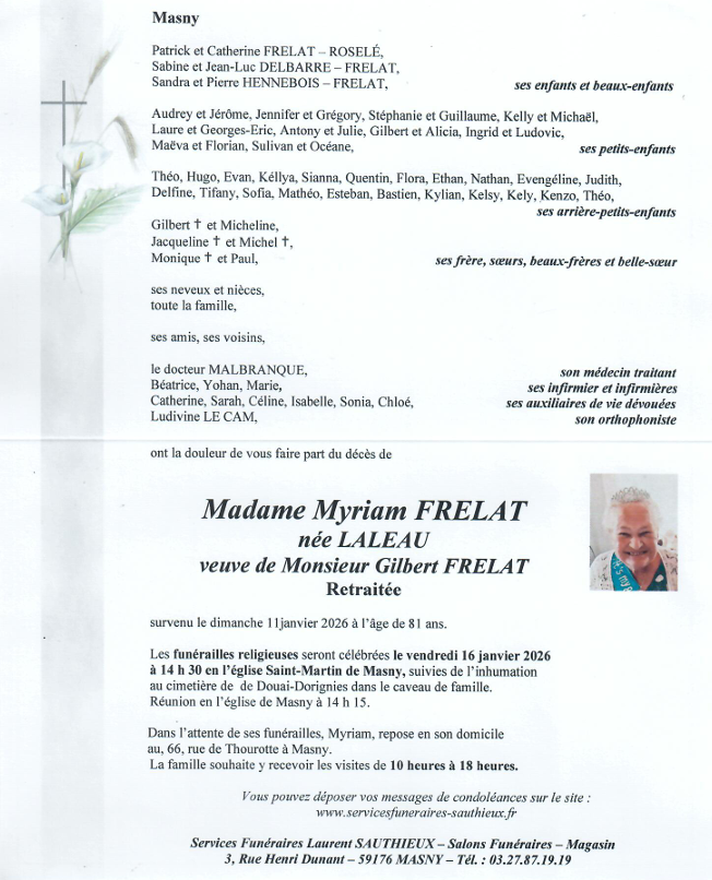 NOUS VOUS PRESENTONS NOS SINCERES CONDOLEANCES A TOUTE LA FAMILLE